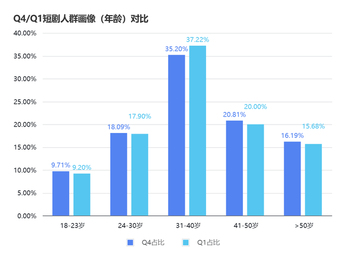 从下图可以看出,2024年Q4与2025年Q1相对,短剧用户的性别没有发生太多变化,女性仍为观剧主力。