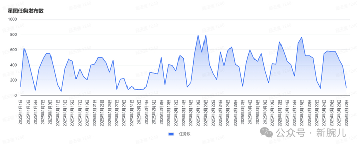 虽然CPS分账预期降低,但随着产能的增加,还有各平台发行的标准下,巨量星图的任务数量在逐步增加,且呈现出周期性。例如在周末和公共假日期间的任务数量较少,而春节后比较高。错过了观剧旺季,证明该发行渠道在目前市场整体发行路径中的权重并不高。