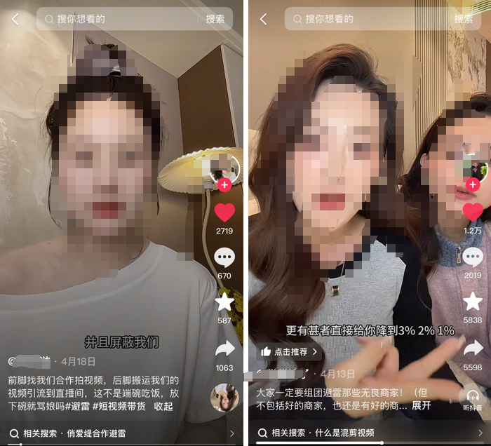 4月以来,多个短视频达人公开发布视频,控诉自己的视频内容被商家搬运了。