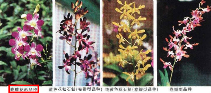 秋石斛的品种较多,具体到饭店菜品上的秋石斛,主要是蝴蝶花形品种。