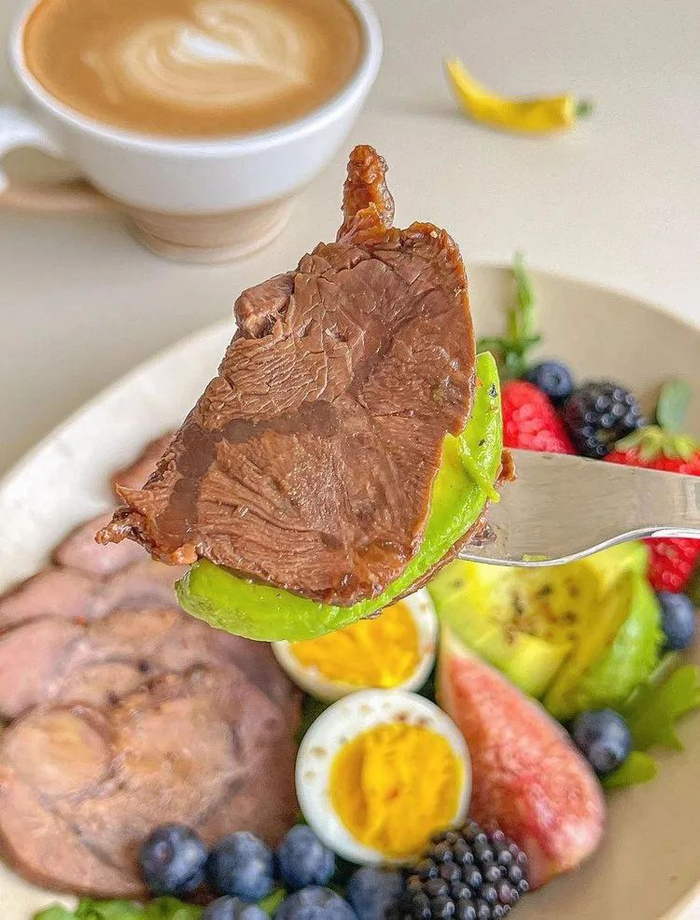 比牛胸牛肩那些肥宅部位脂肪少多了,每次健身完我都忍不住切几片,肉汁饱满不柴,纹理漂亮得像艺术品!