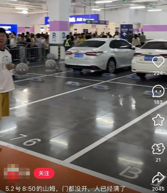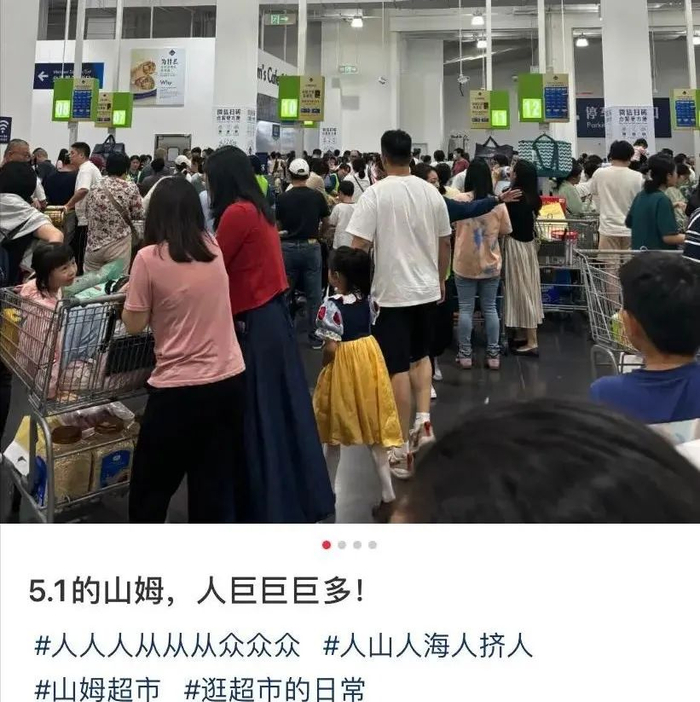 “今年五一没有堵在高速上,也没堵在热门景点,却堵在了超市大门口。”