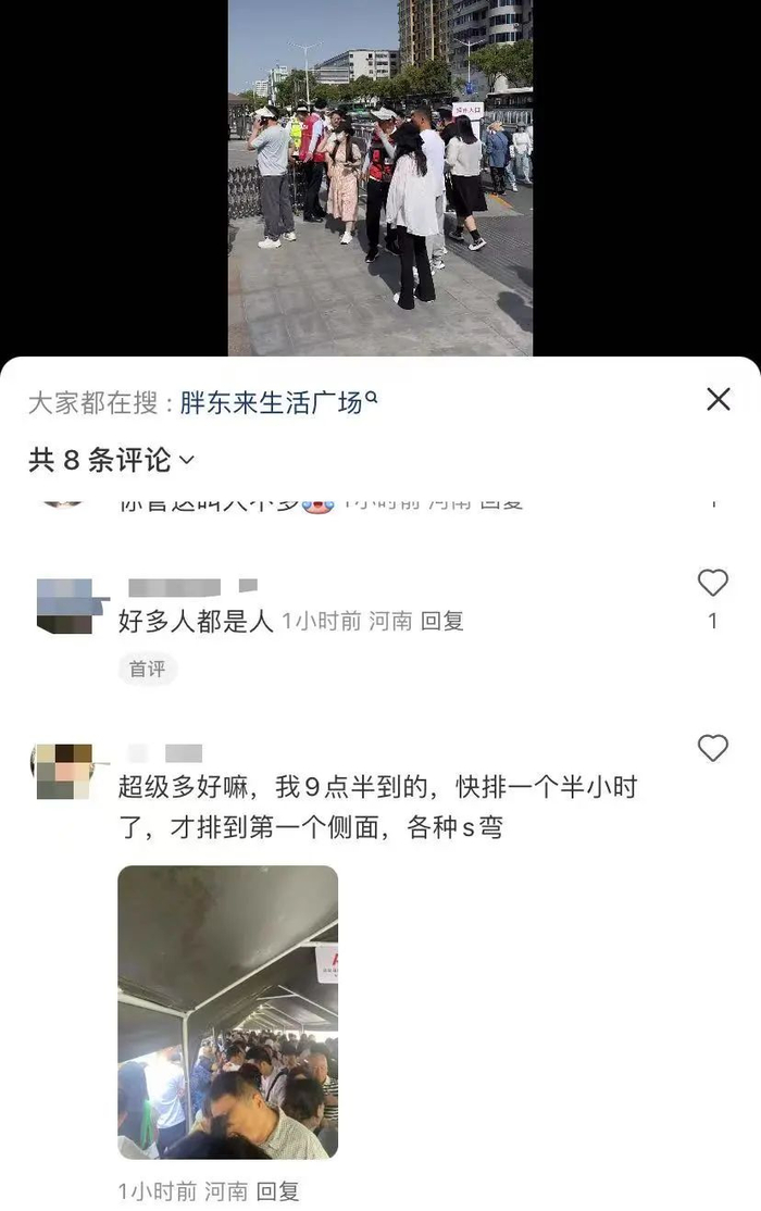 就有网友被这人山人海的景象震惊到,“今天胖东来感觉有1亿人”、“排队好几层,拐到十字路口去了”。