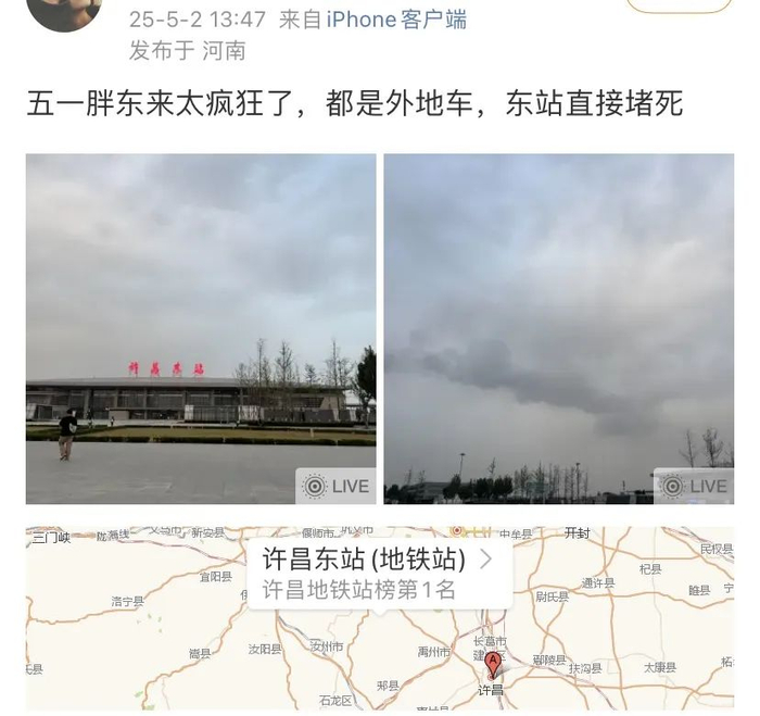 五一假期,外地车甚至把河南许昌东站直接给堵成了筛子。