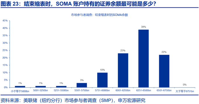 参考纽约联储的一级交易商和市场参与者调查(样本量为42),39%的调查者认为,结束QT的时点或落在SOMA账户余额为6.25-6.5万亿的区间。截止到4月底,美联储直接持有的证券规模已经下降到约6.4万亿美元。美联储结束QT的时点渐行渐近。按照正常次序,联储结束QT并预示着会立即重新扩表,而是希望在充足准备金区间内进一步压缩准备金规模——依靠负债侧科目之间的替换。在后续QT和重启扩表的时机/时间上,美联储有较高的自由度。考虑到美债流动性压力,美联储可在5月例会上宣布不再减持国债。后续如果判定货币市场流动性偏紧,美联储可以在任意时间重启扩表——但并非量化宽松(QE)。所以,虽然流动性的压力测试尚未结束,股债汇“三杀”的极端场景有可能再次演绎,但不宜高估由此可能引发的金融系统性风险。流动性(包括国债的流动性)属于宏观审慎管理范畴,Fed put的存在性和有效性经历过考验。