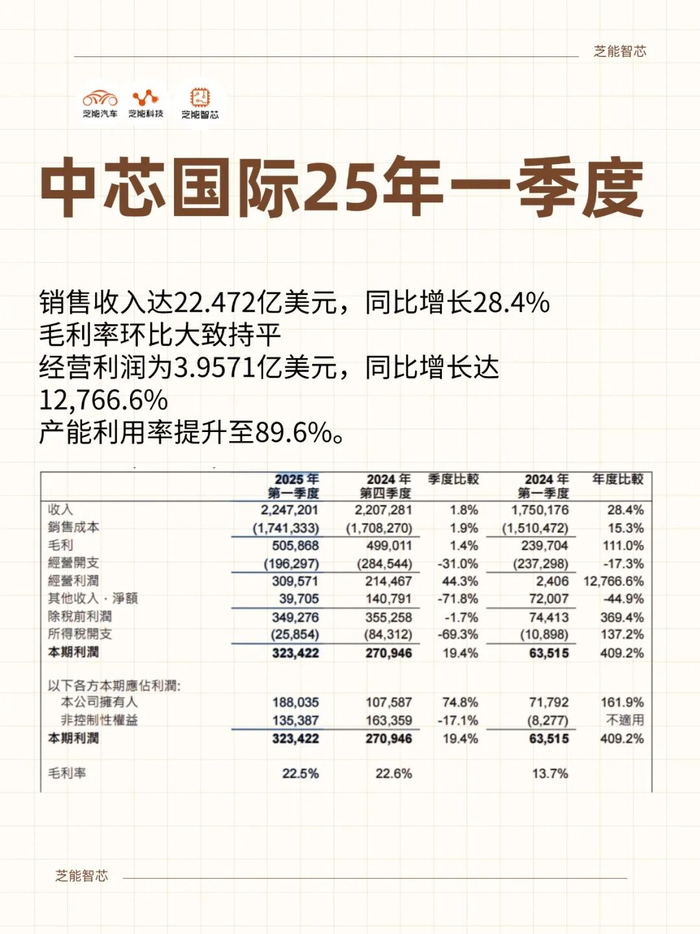 中芯国际25年一季度财报:利润暴增、产能利用率回升