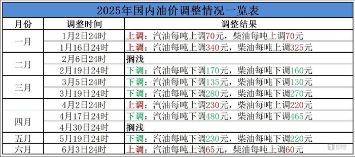 2025年6月3日,国家发展改革委价格司发布公告,根据近期国际市场油价变化情况,按照现行成品油价格形成机制,自6月3日24时起,国内汽、柴油价格(标准品)分别上调65元/吨和60元/吨。
