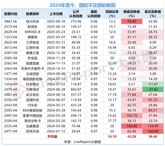 所谓“套路回拨”,即如果国际发售认购不足,若公开发售超过100倍,也可以启动20%的回拨,代价是必须下限定价。据LiveReport大数据统计,“套路回拨”的股票于上市首日往往股价表现较为亮眼。