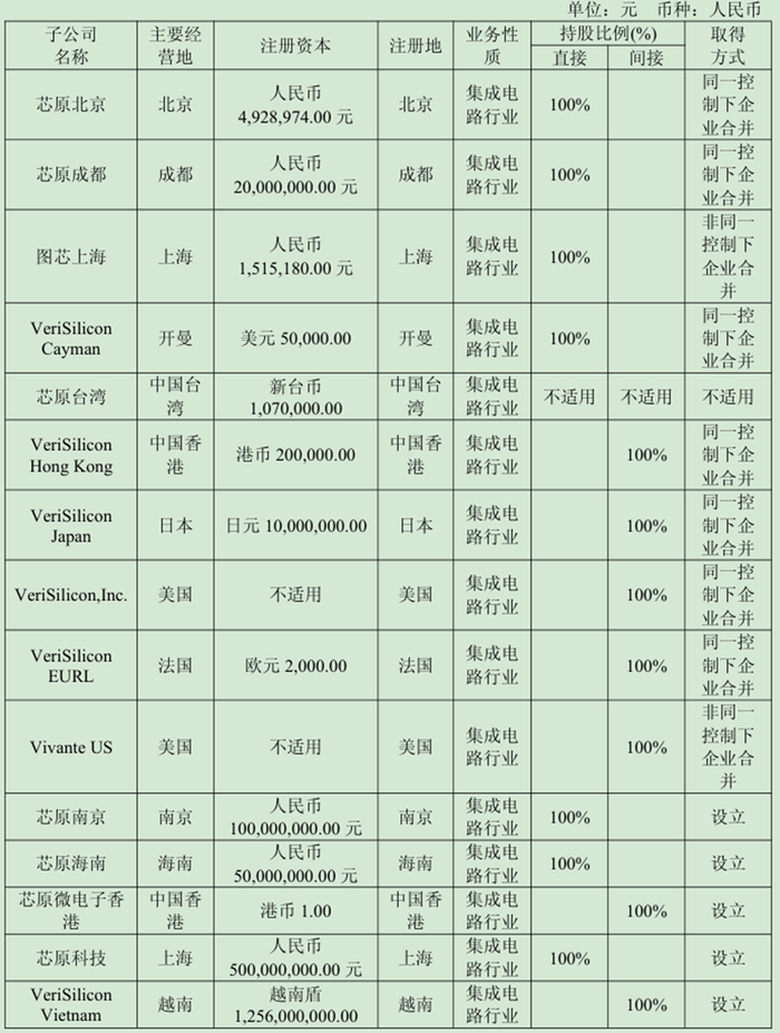表1 芯原集团的组成