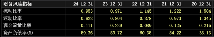 再看部分同行情况,2024年,欣旺达的资产负债率为63.44%,流动比率为1.118,速动比率为0.933;璞泰来的资产负债率为53.59%,流动比率为1.389,速动比率为0.893;先导智能的资产负债率为68%,流动比率为1.411,速动比率为0.784。