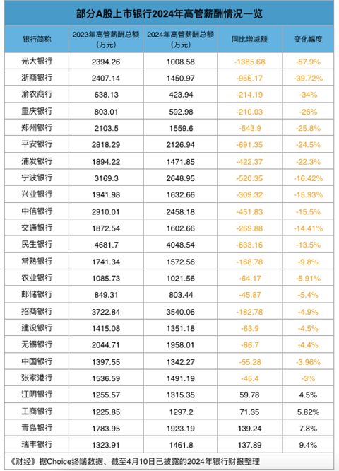 可以说,在本轮银行降薪中,高管无疑是主要的“目标”。不妨看看部分上市银行的具体降薪数据: