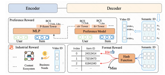 再进一步,快手还引入了基于奖励机制的偏好对齐方法,用强化学习系统性增强了推荐的效果。