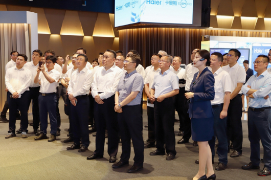 6月19日,浪潮集团党委书记、董事长邹庆忠带队到海尔集团参观,海尔集团党委书记、董事局主席、首席执行官周云杰陪同参观。