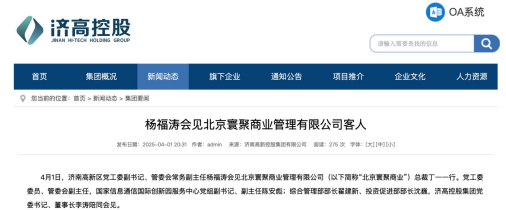 此外,寰聚商业还与山东省会济南有亲密接触。济高控股官方消息显示,今年4月,寰聚商业总裁丁一带队拜访济南高新区党工委副书记、管委会常务副主任杨福涛。