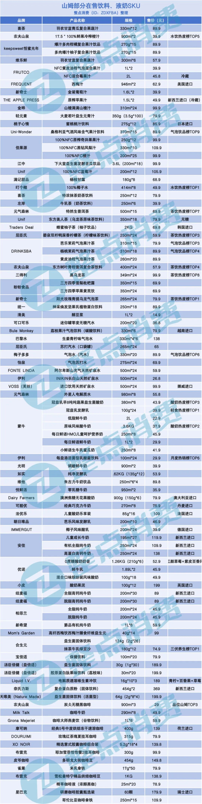一方面,这几个品类在国内软饮料市场一直都是TOP级的细分领域;另一方面,相比其他更小众的产品,这些品类能更好地做出差异化,以匹配山姆自身的品牌调性。