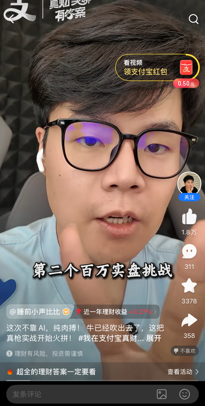 另一方面,创作者们来到支付宝,都带着明确的创作方向——与钱有关的内容,而不是简单地将支付宝作为分发的平台之一。理财作为支付宝用户与创作者的桥梁,让创作者们更定向地创作用户想看的理财内容。