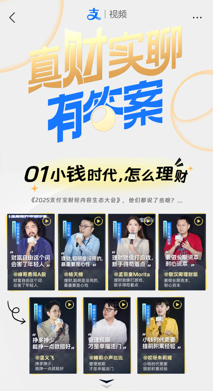 而这次论坛上丰富多元的嘉宾观点,就像是支付宝视频内容的一个切片预告,它们也证明着,支付宝当下的财经垂类内容能力,已经进入next level。