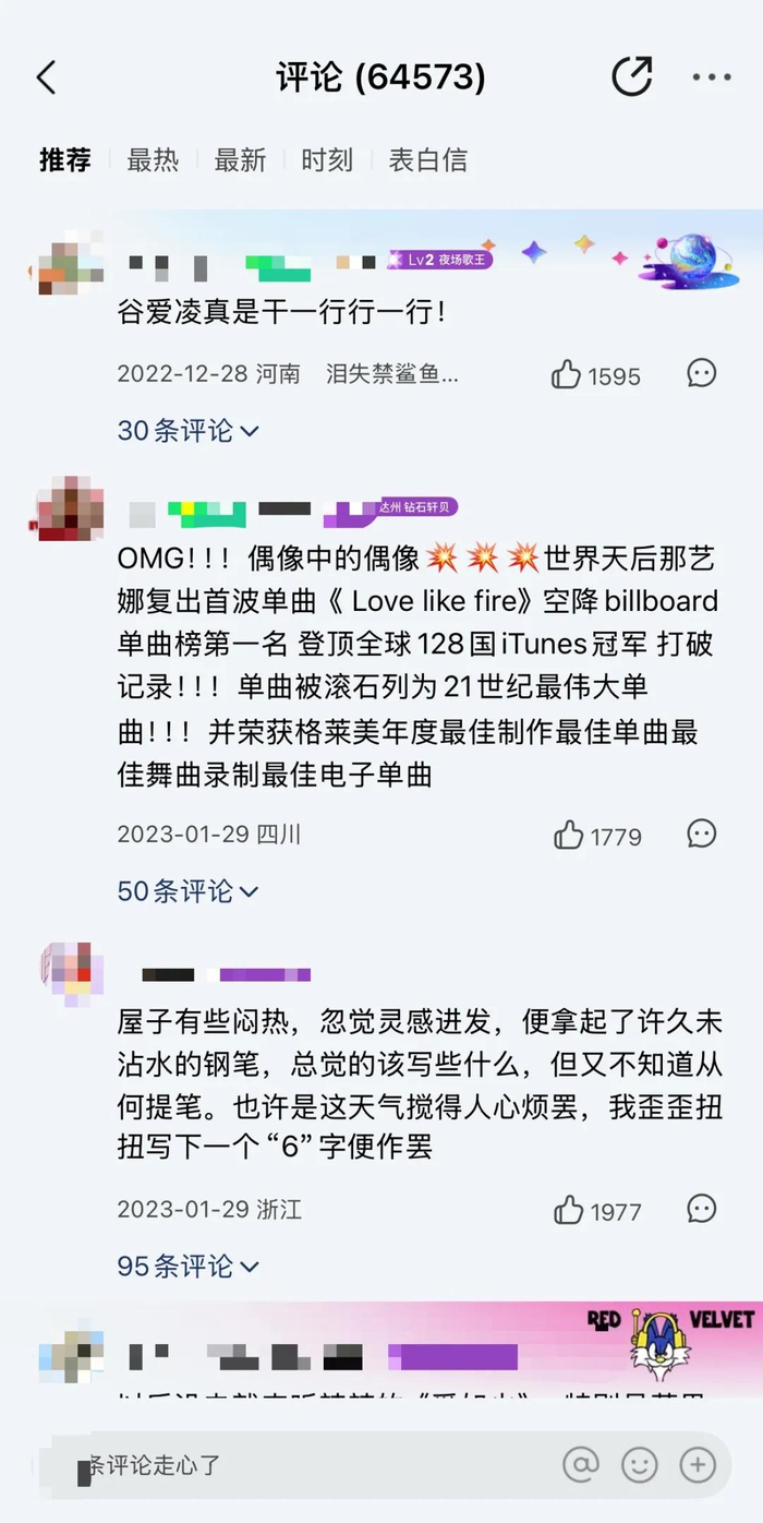 正是这首旋律简单、歌词直白的口水歌,掀起了席卷全网的跟风、模仿,为今日之娜娜的“星光坦途”铺好了红毯。如今《爱如火》作为“娜粹们”最经典的素材,从音乐平台到短视频平台,均有海量远超歌曲本身丰富度的文本互动,“国风偶像那艺娜,优质全能新定义”、“朴彩英算啥,我辣一辣轻松比下去”、“世界第一女solo”......不知道的,还以为是饭圈粉丝在控评。