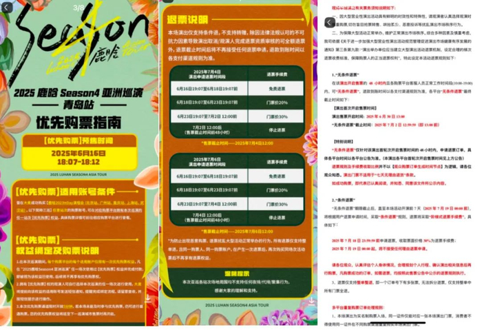 以鹿晗武汉站和李荣浩武汉站演唱会为例,同样是在大麦售票,但两者在是否支持48小时内无条件退票以及退票梯次设置等问题上都不一样。