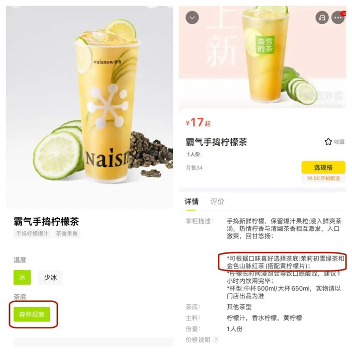 奈雪的霸气手捣柠檬茶,原本会根据茶底匹配黄柠檬或香水柠檬,但近期该产品已不可选茶底及柠檬,仅剩余香水柠檬版本。奈雪天津门店店员告诉有意思报告,目前只有“瘦瘦小绿瓶”中含有黄柠檬,“但也只有一片”,其他产品均不再使用黄柠檬。
