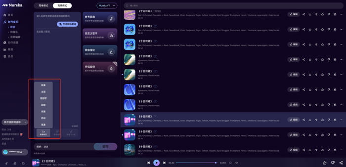 然后他们就非常快速当场的给我开了Mureka v7新音乐模型的内测,开了会员,给了400积分,说,你先试试?