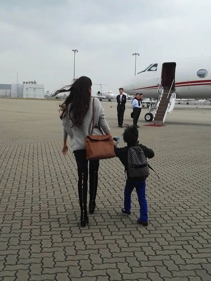 以前她的社交媒体里有很多奢壕排场,带着三娃和三个菲佣坐私人飞机出行,不过是她的日常。