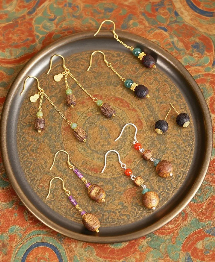 这5对耳饰运用匠心的敦煌美学设计与真材实料的沉香、降真香为主;