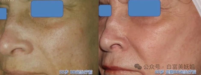 给大家看一个做了20次超光子的案例,10年过去了,模特的皮肤不仅没有变得更衰老,反而变得更白嫩、紧实、匀亮了。