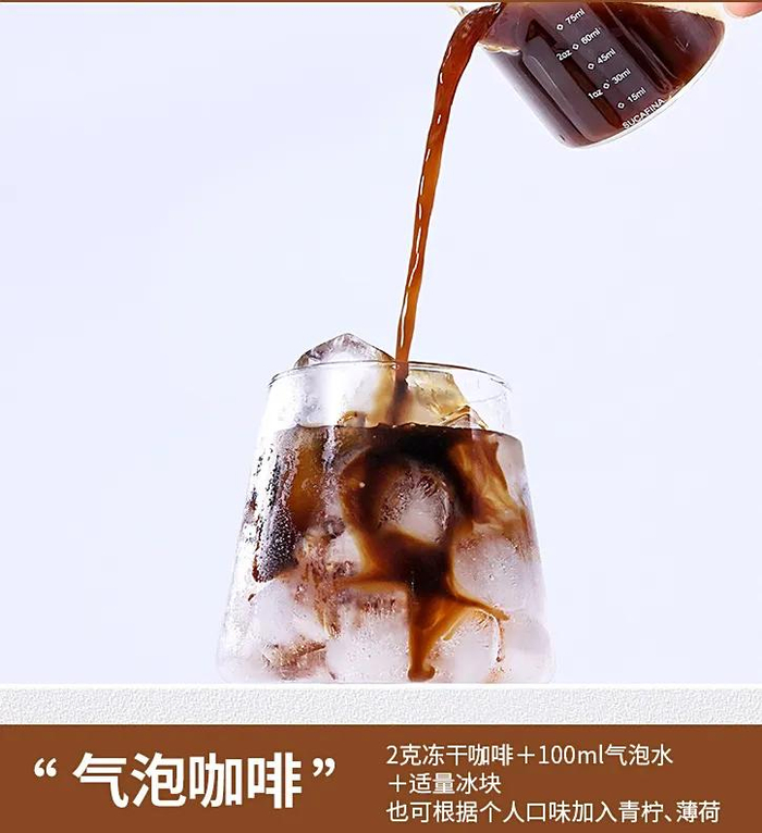 每罐咖啡可冲约50杯,还能自由制作生椰拿铁、气泡咖啡等多种饮品。