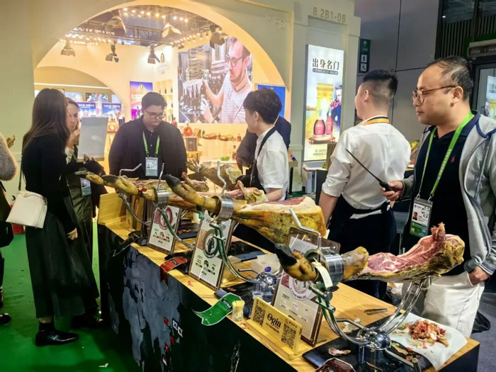 西班牙火腿品牌VALENT(巴伦丁)于2020年进入亚洲市场,已参展三次,他们此前主要是通过代工产品出口至中国,年出口量在10—15个货柜,其亚洲市场负责人张涛告诉小巴,这次参展遇到有大连、广东老板想做线下代理。