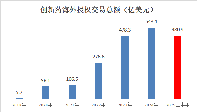 图:2018年-2025上半年创新药海外授权交易总额