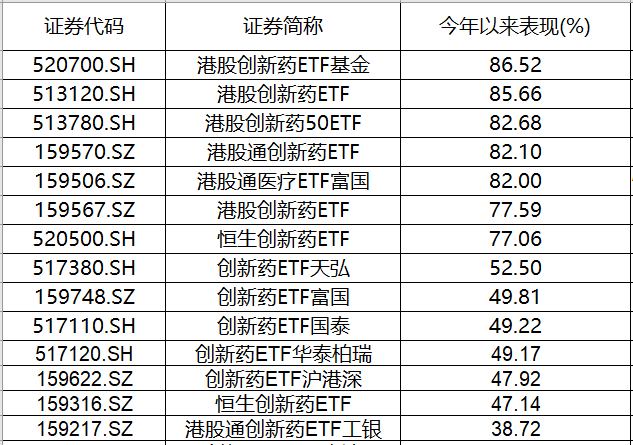 从年内表现来看,港股创新药ETF基金(520700)位列涨幅前一。