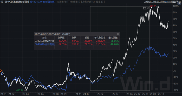 资本市场上,创新药板块也开启“加速度”。其中A股创新药指数年初以来到9月1日,其上涨超过62%,同期港股通创新药指数上涨接近120%,大幅领先恒生科技、机器人、人工智能等热门板块。