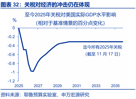 2)2025年,特朗普关税2.0对于美国就业市场的冲击亦不可小觑,根据我们测算,2025年关税敏感型就业增速较2024年放缓2/3左右,而不仅仅局限在制造业,是近期美国就业疲弱的核心要素之一;