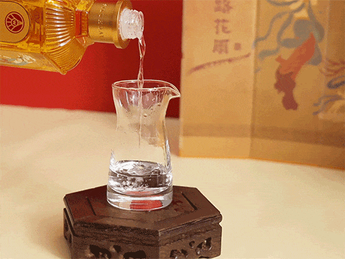 酒体清冽透明,品上一口,顺滑、绵柔、甘甜,不易上头。