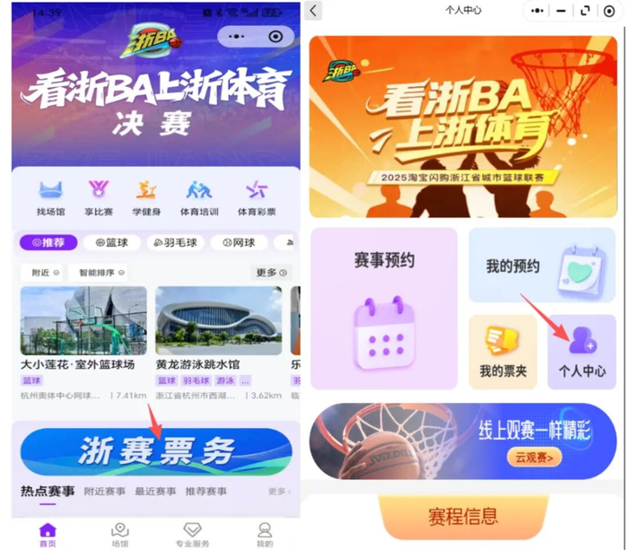 2月1日第二场比赛结束后,“浙体育”预约购票系统将适时开放总决赛决胜场次(省黄龙体育中心体育馆)的预约购票功能,用户可按流程完成预约报名、支付及候补等操作。预约过程中,相关信息将通过短信方式提醒,门票记录也将统一保存在【我的票夹】中,便于随时查询。具体时间安排请以系统及官方发布信息为准。