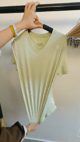 这件T恤摸到手的瞬间,真的会“哇”一声。不是那种涩涩的布感,而是像丝绸一样滑溜溜的,贴着皮肤走,一点摩擦感都没有。