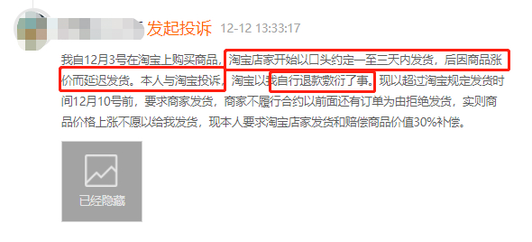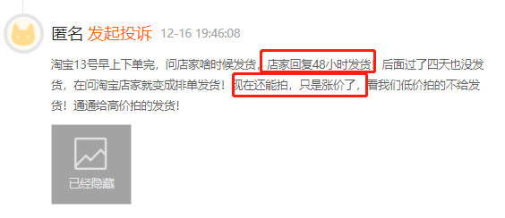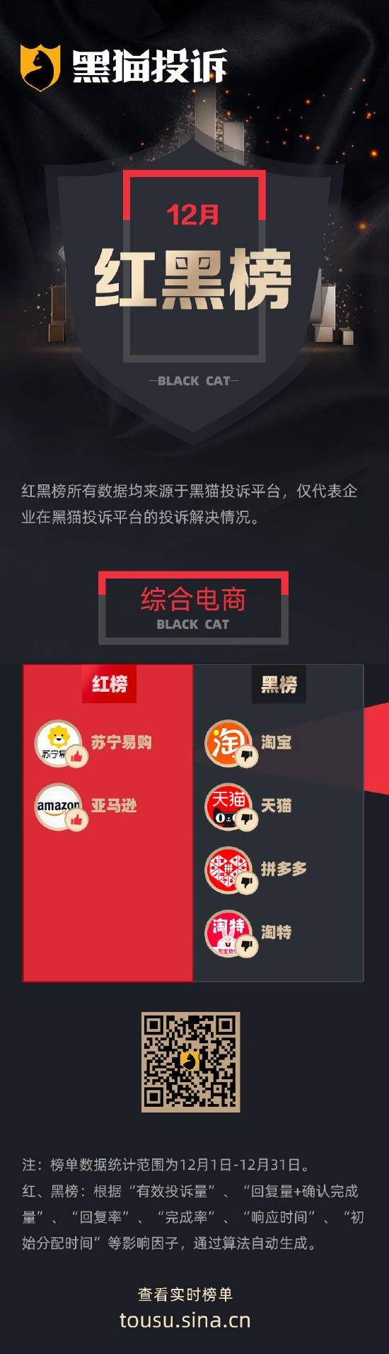12月黑猫投诉综合电商领域红黑榜:淘宝商品涨价不发货