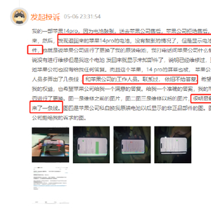 有用户在黑猫投诉平台反馈,自己的苹果14pro由于电池鼓胀进行售后维修,退回后却发现不仅电池显示未知部件,屏幕也出现了一条绿色的线。