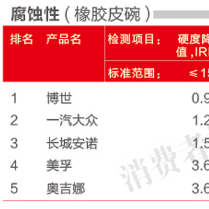 为此,本刊对5款制动液的腐蚀性和橡胶适应性进行了检测。结果发现,作为国产制动液第一大品牌的奥吉娜在这两项指标中均垫底,其中橡胶适应性的检测结果已接近标准限值,容易造成漏油风险。
