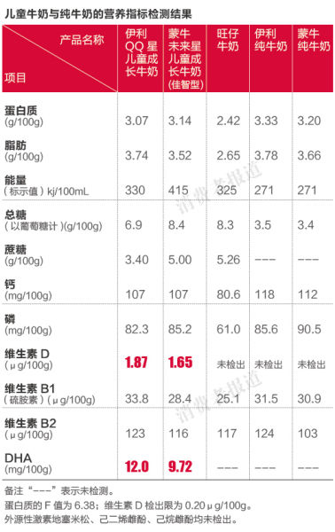 伊利等儿童牛奶营养含量略低 DHA能否益智无定论