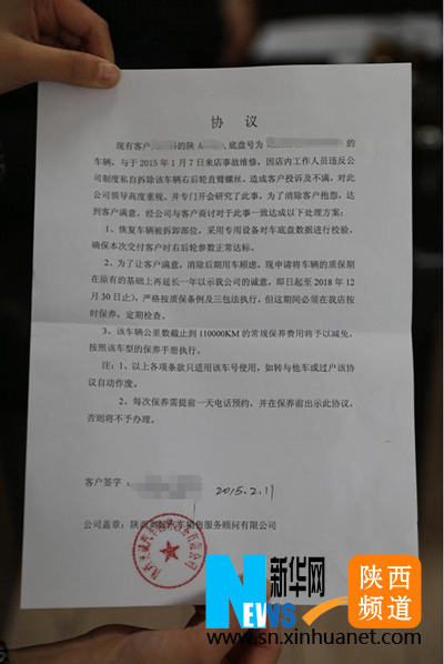 新华网陕西频道3月13日电 近日,车主刘先生向新华网陕西频道投诉,自己的一辆奥迪Q7越野车在陕西奥诚奥迪4S店维修车辆前保险杠期间,发现车辆右后轮直臂被私自拆卸。刘先生表示自己不能接受车辆在正规奥迪4S店维修还会发生被私自换件的情况。