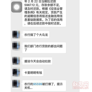 【新民网·独家报道】今天(23日),陆续有本市网友向新民晚报新民网记者曝料称,自己在农行办理房贷,今天突然接到短信,称明明足够还款的贷款账户“余额不足、扣款无法成功”。