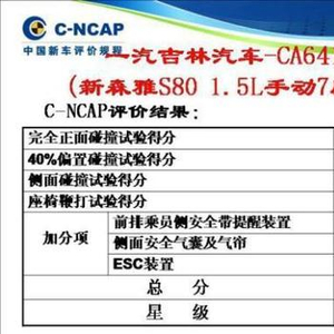 据了解,一汽新森雅S80是C-NCAP自2006年推出以来,10年时间对319款车型进行的碰撞试验中,得分最低的一款车。