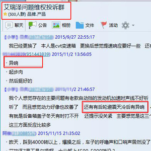 QQ群中车主反映自己的车存在异响问题