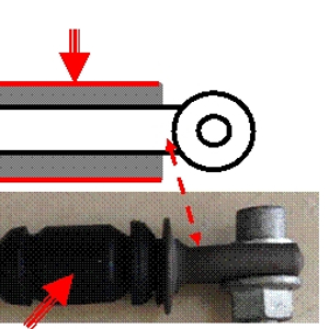 上图红色细箭头是丰田佳美的下悬架连接杆,红色粗箭头指的是橡胶套。