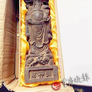 日前,在沙坪坝区大学城做餐饮生意的张老板接到圆通快递送来的一尊财神,货到付款39元。让张老板尴尬的是,木头财神不仅做工粗糙,找不到卖家退款退货,圆通也拒绝对此事负责。“我不在乎这39元,但这事坑得人真怄气呀!”张老板很无奈,拨打重庆晚报24小时新闻热线966988投诉。