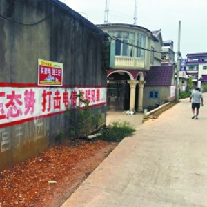 与其他村庄的墙壁上多写着“机器打井”、“空心砖包送”等小广告不同,在石溪村,几乎家家户户的墙壁上都用写着“同诈骗斗争”、“严厉打击诈骗犯罪行为”等标语,红色的大字写在白色的油漆上,格外醒目。
