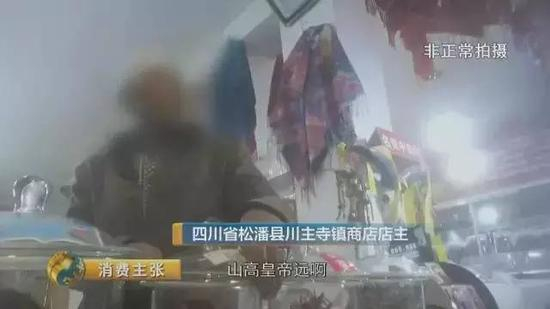 松潘县川主寺镇当地商店店主:山高皇帝远啊,我就跟你说,比如说我们在外面摆个摊,政府都要管你的,他们不管的,有(数钱的手势)人民币。
