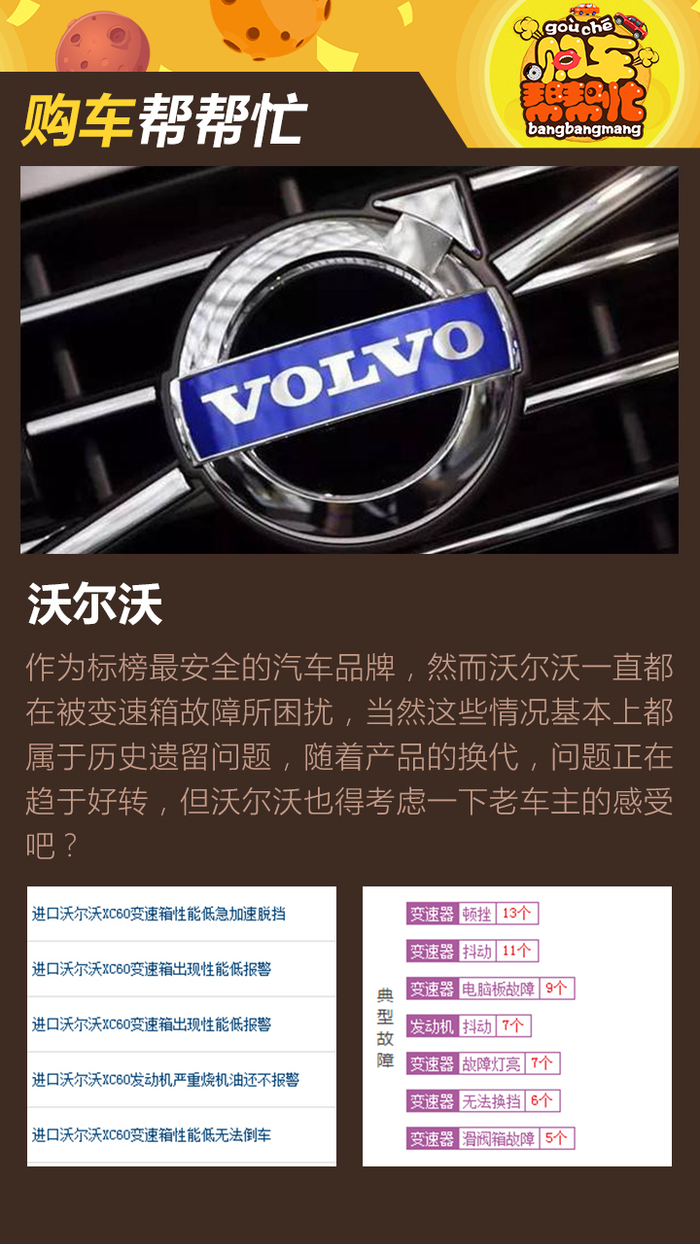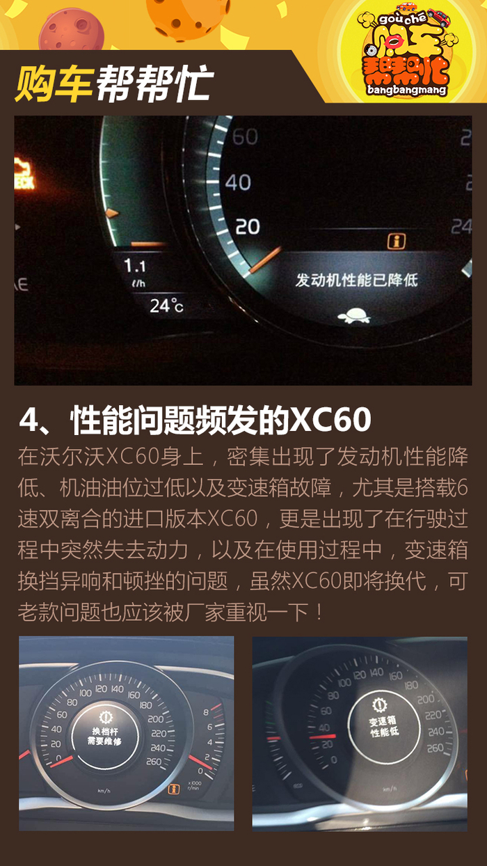 沃尔沃变速箱这口锅,其实和它的前老东家——福特,有着抹不开的关系。不管是进口版本的XC60,还是S60,在车质网的所有投诉中,都与变速箱故障有关,甚至还有用户出现了倒车时失速的情况,除了变速箱故障,还有用户曝出沃尔沃惹上了“烧机油”的毛病,真的是要了亲命!